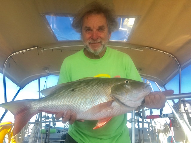 Before long the fishing reel started screaming and another fish was about to come aboard. Yep, I had caught another big Mutton Snapper while trolling behind the boat. What a great omen and blessing.